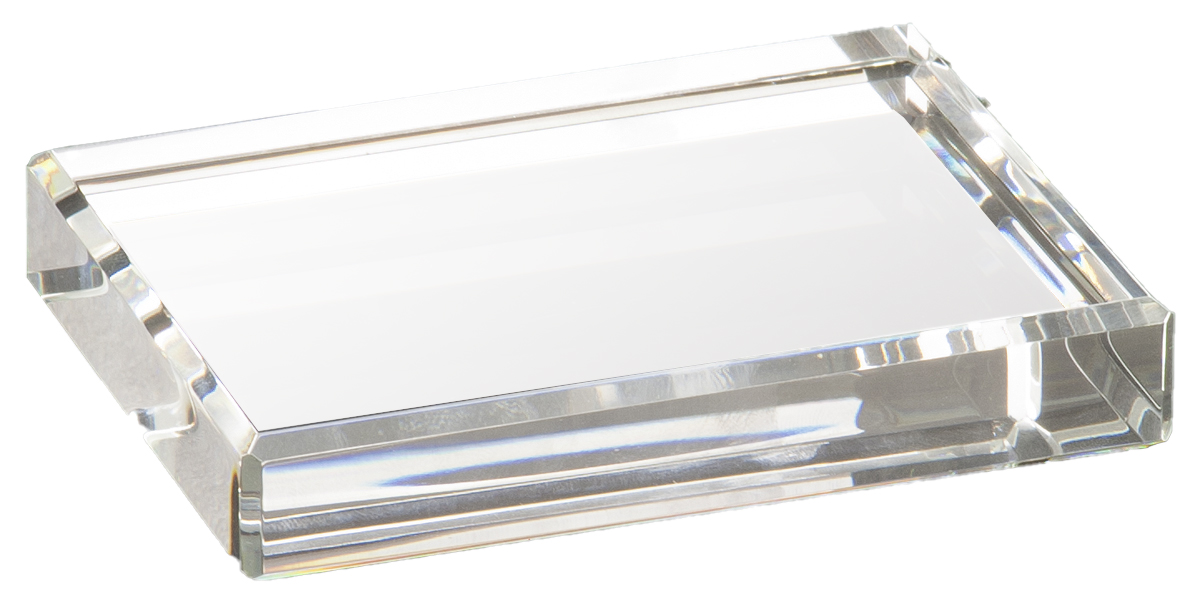 4" x 3" Our Premier Crystal Paperweights is handmade and may vary slightly in size. Optic crystal rectangle paperweight with bevel edges. Packaged individually in a lined gift box. Premier Crystal is the ultimate way to recognize and honor!