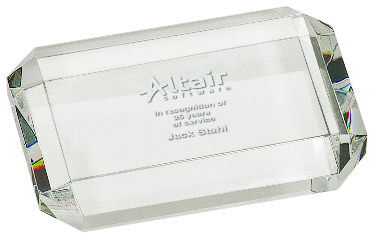 Crystal Rectangle Paperweight with Clipped Corners - 25 Years of Service